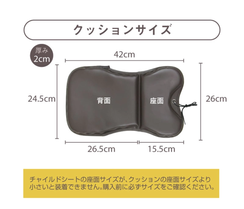 ・お子様のおしりと背中をしっかり守る自転車チャイルドシート用携帯型クッションのロングタイプ