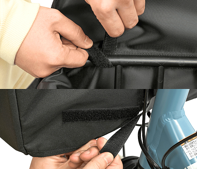・カバーの取り付けは前カゴに被せて面ファスナーで留めるだけでとても簡単