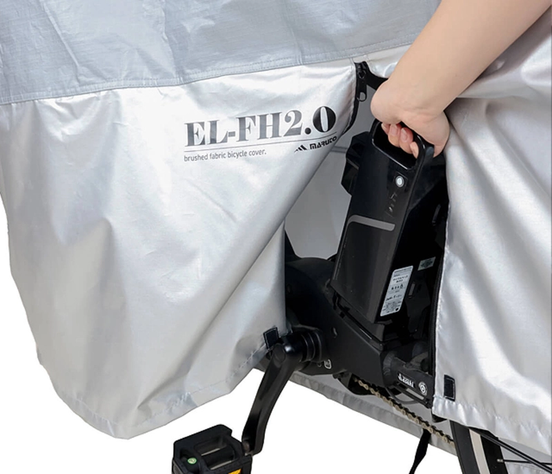 ・中央のファスナーを開くことでカバーが掛けやすく、バッテリー交換も楽々