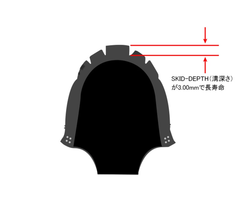 ・SKID-DEPTH(溝深さ)が3mmあり長寿命