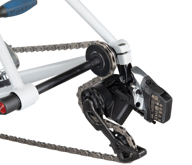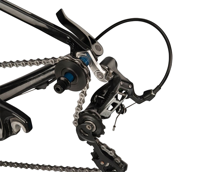 ・チェーンなどのドライブトレインの洗浄やメンテナンス、後輪を外しての自転車の輸送時にチェーンが不用意に遊ばないようにしておく便利なダミーハブ・ダミーハブを装着した状態でディレーラーを可動させることができ、チェーン洗浄時やディレーラーのメンテナンスに最適