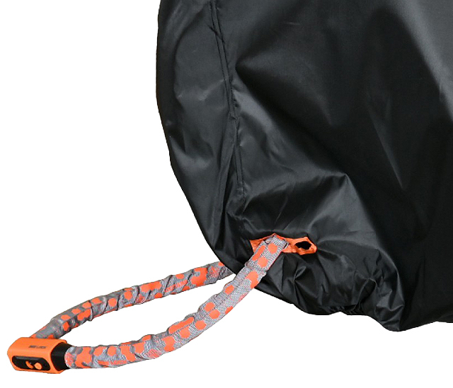 ・フロント側に強力ゴム、カバー中央下にはバックル付きセンターコードを装備して風飛びを防止