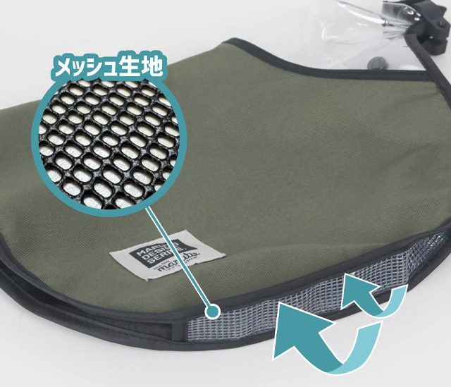 ・本体下部マチ部分には、通気性の良いメッシュ素材を用いることで夏場でも快適