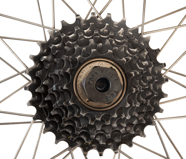 ・自転車の後輪にある1枚から11枚のスプロケットの取り付け、取り外しをするためのフリーホイールリムーバー・サンツアー製4ノッチタイプ(1986年以降)のフリーホイール用