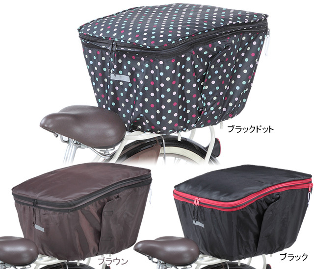 ・3人乗り自転車用フロントバスケット、センターバスケットに対応した前後兼用タイプのバスケットカバー