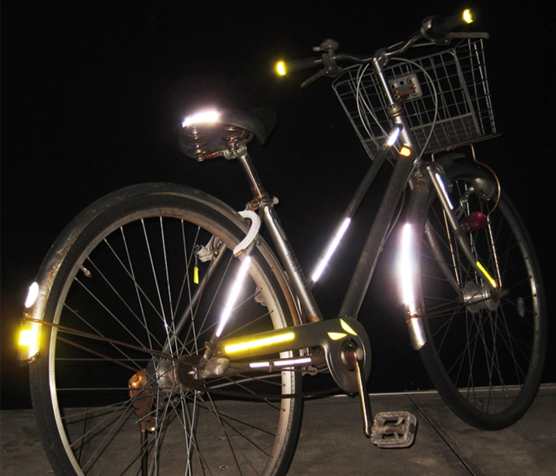 ・自転車やヘルメット、バッグに貼り付けて車のドライバーへ存在をアピール